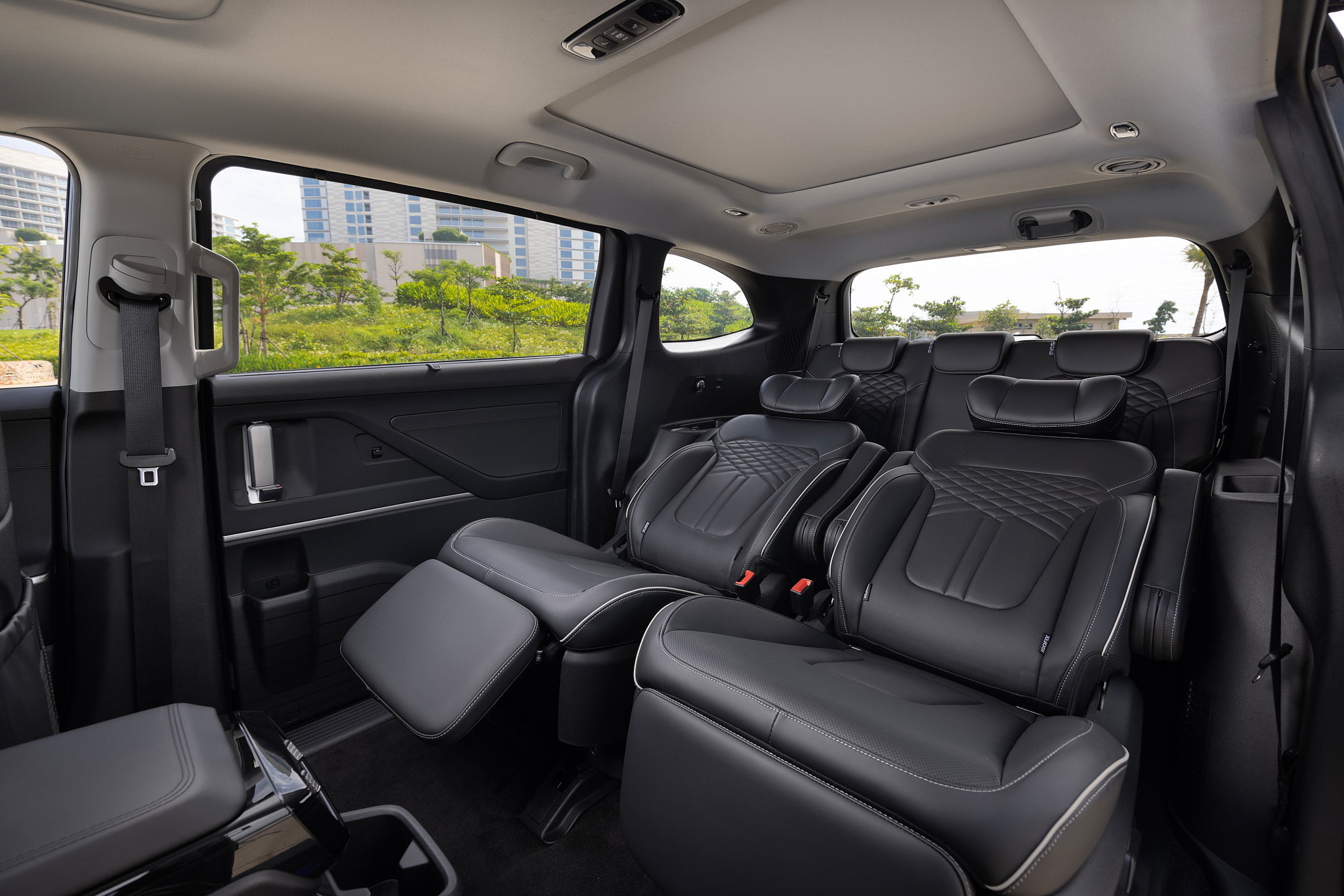 Điểm nhấn của không gian ngồi của Custin là hàng ghế thứ 2 có thiết kế 2 ghế độc lập kiểu “Captain”. Ghế captain cho không gian ngồi thoải mái, riêng tư cho khách hàng, đồng thời cung cấp những tiện nghi vượt trội trong phân khúc như sạc không dây cho từng ghế, bàn làm việc, để đồ